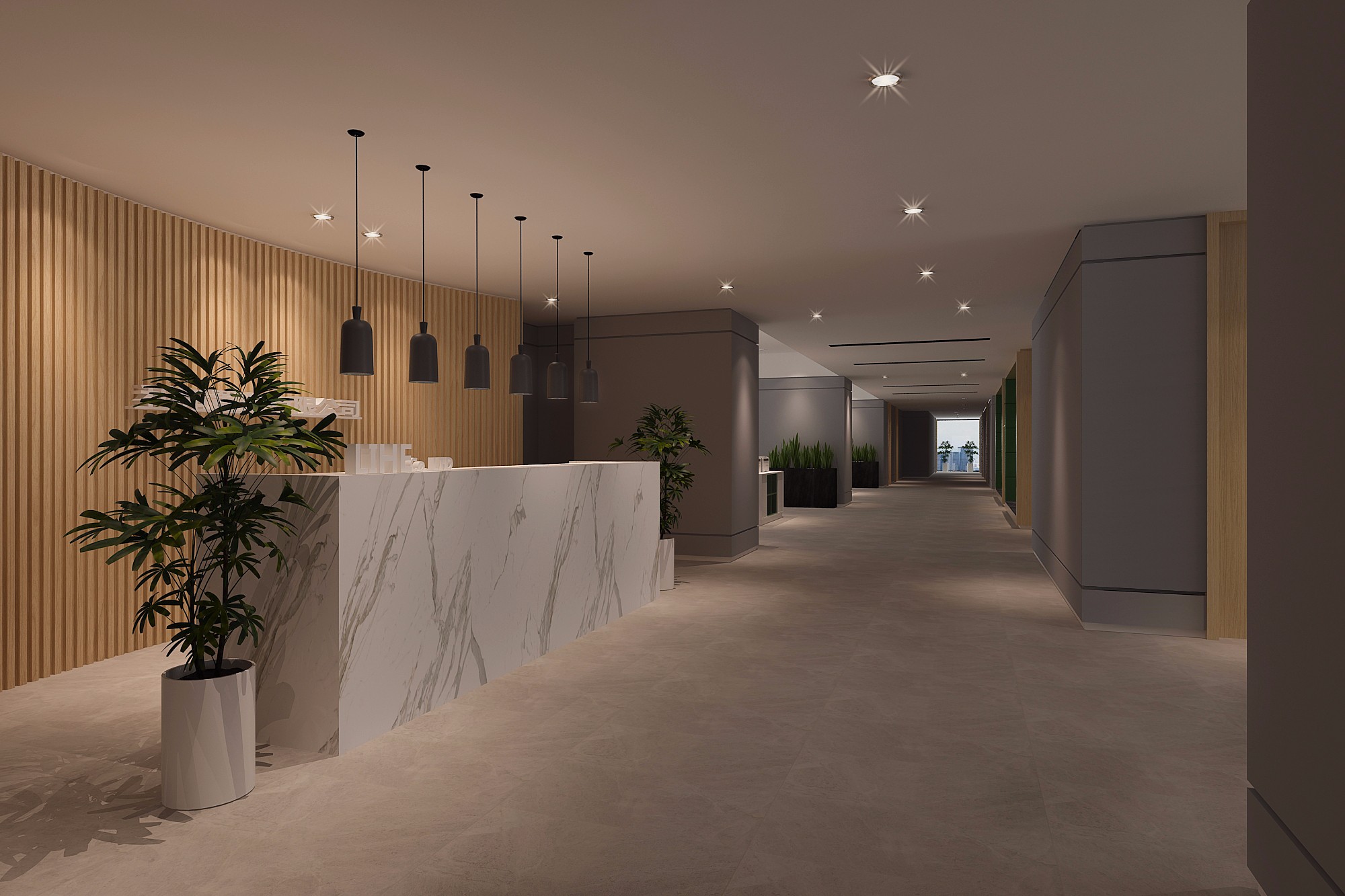 4300平米醫(yī)療公司辦公空間設(shè)計(jì)布局,平靜的色彩、柔軟的面料和以類似色調(diào)選擇的彎曲形式提供了所需的寬敞和平靜的氛圍。彎曲的墻壁從入口連續(xù)延伸,增強(qiáng)了空間的連續(xù)性,并通過在墻壁內(nèi)創(chuàng)建的彩色壁龕創(chuàng)建了咖啡店區(qū)域等功能區(qū)域。